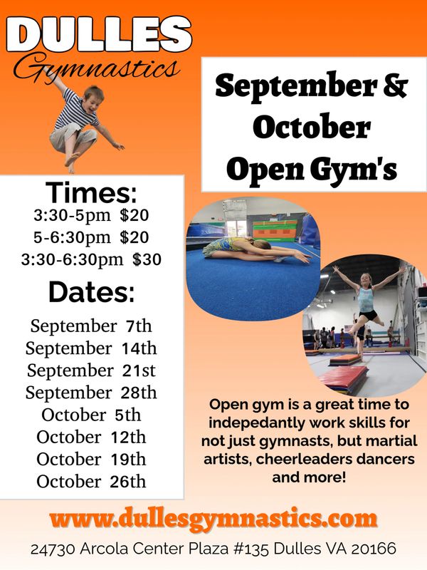 Our Open Gym's are non-instructional session provides gymnasts, cheerleaders, dancers, martial artists and anyone time to work skills and have fun with friends